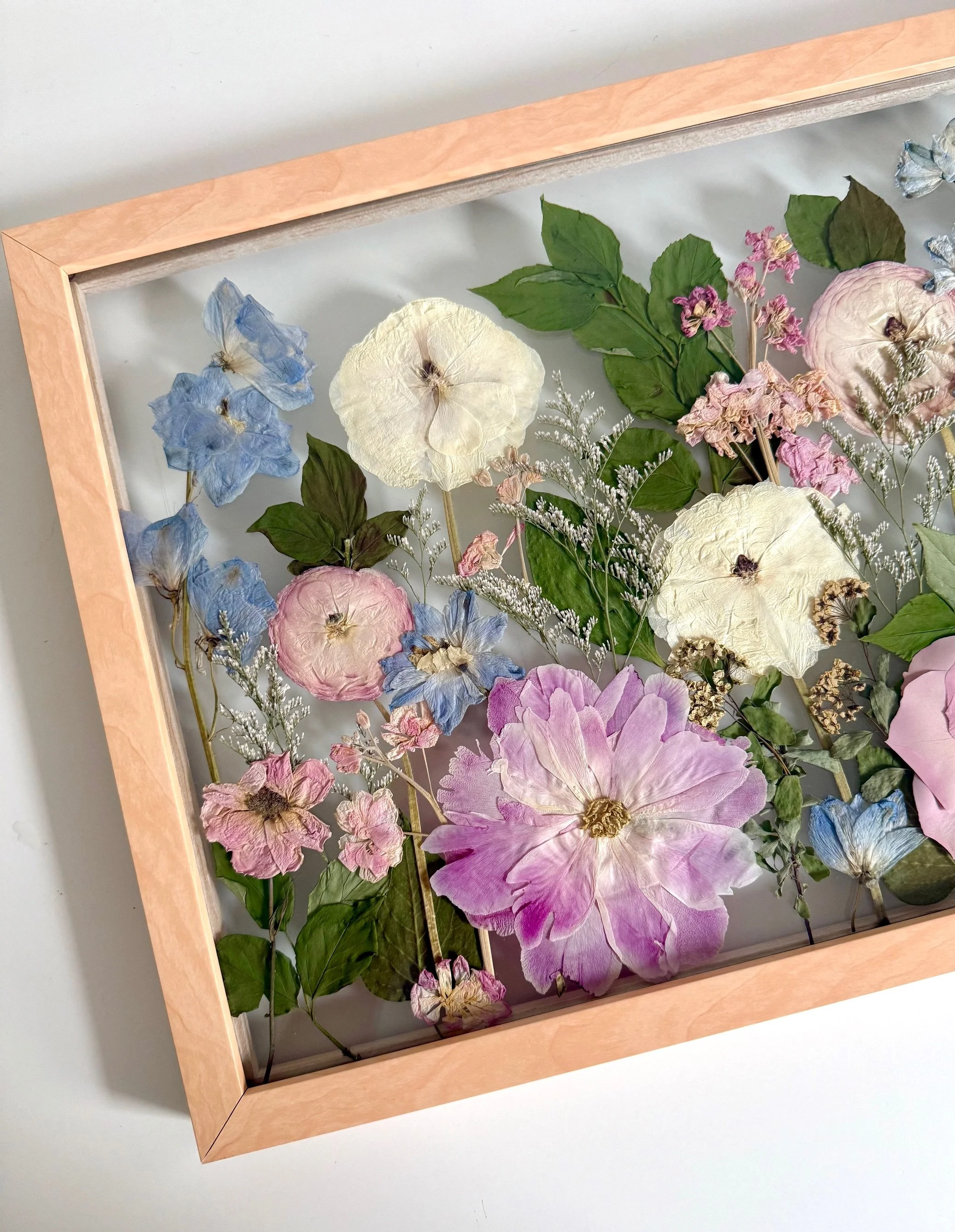 It is a top priority to ensure that every customer loves the artwork they receive back. To ensure this, we offer design mockups to all clients prior to framing the flowers. This way, each client can confirm the design or provide any input they would like to see, making it 100% perfect for them.